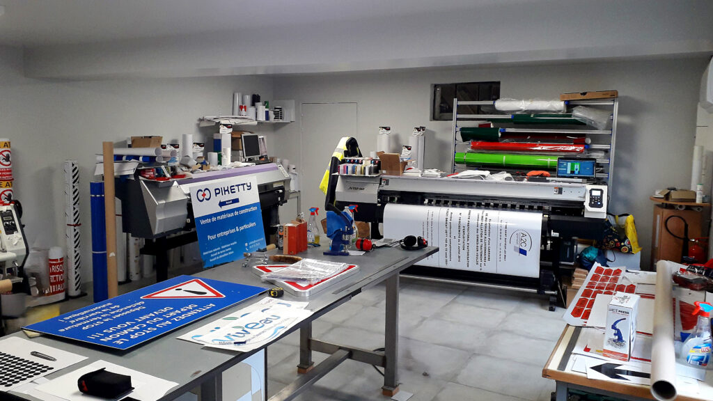 Nous réalisons dans les meilleurs délais : vos adhésifs, véhicule, panneaux routiers, de chantier ou publicitaires, bâche, enseigne, signalétique, marquage au sol, flyer, affiche, brochure, dépliant, calendrier, étiquette, objet publicitaire …